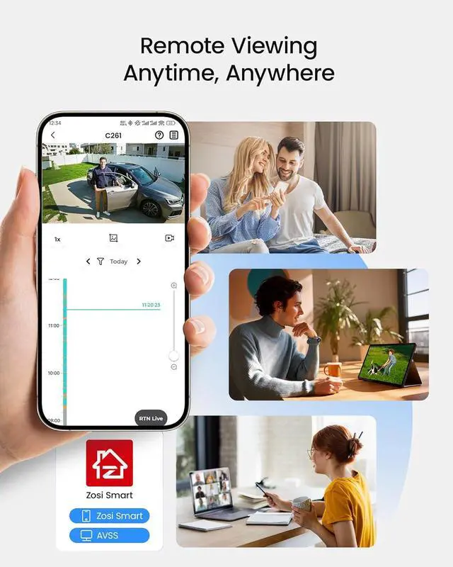 (4). [ Local & Remote Viewing with Smart Playback ]__ View live footage locally by connecting the NVR to a monitor without internet access, or monitor remotely through the free ZOSI Client on PC or tablet and the ZOSI Smart App on smartphones. Quickly search and playback recordings by date, hour, or minute to find important events or evidence.