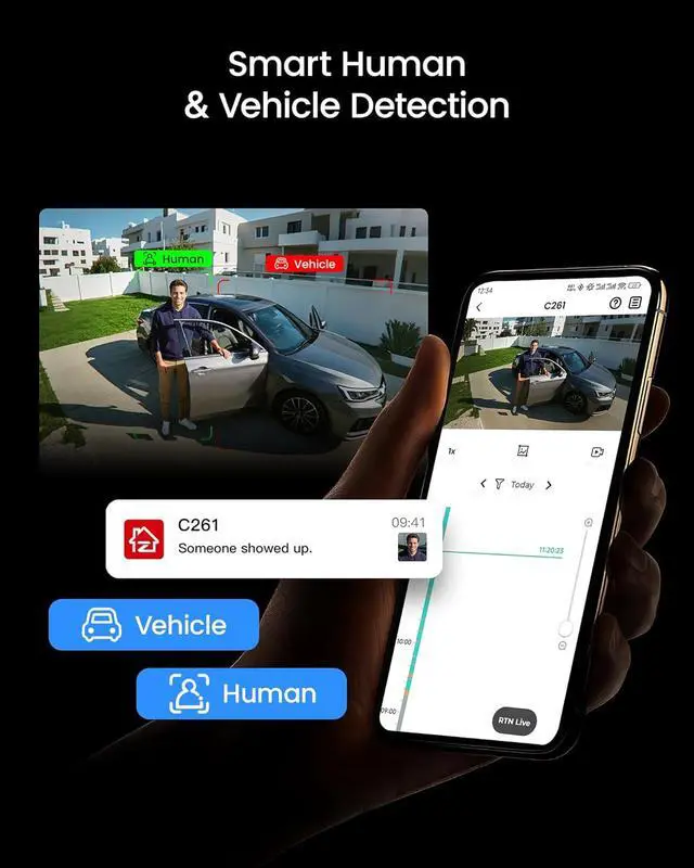 (2). [ Smart AI Human & Vehicle Detection with Instant Alerts ]__ Advanced AI detection accurately identifies humans and vehicles to reduce false alerts caused by animals or environmental motion. You can also block selected areas to protect privacy. When motion is detected, the system sends instant app push notifications and email alerts with snapshot images, keeping you informed in real time.