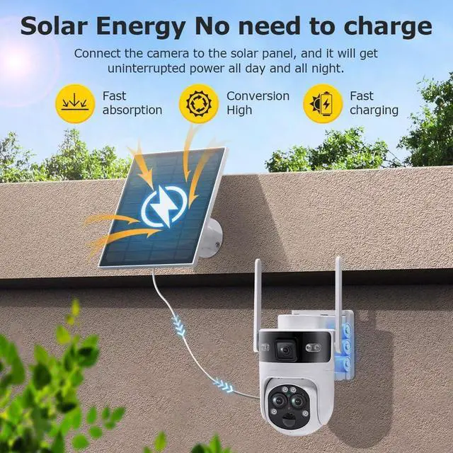 Three lens dual screen+15x hybrid zoom, with all-round and no dead angles, ultra clear protection, 4 times clearer than ordinary 1080P cameras, can capture key details clearly. The innovative three lens dual screen design can present wide-angle panoramic and close-up tracking images, combined with 15x hybrid zoom, allowing for clear display of details even at long distances without the need to frequently switch perspectives. Especially suitable for safety needs in large courtyards, garages, etc,