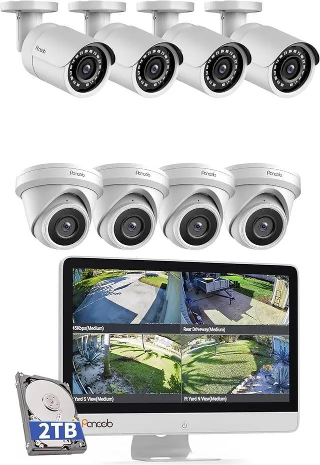 1X PANOOB 8 channel 4 cameras PoE NVR kits with monitor( include 4X 60-ft Cat5 ethernet cables)