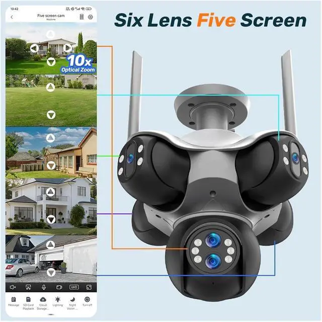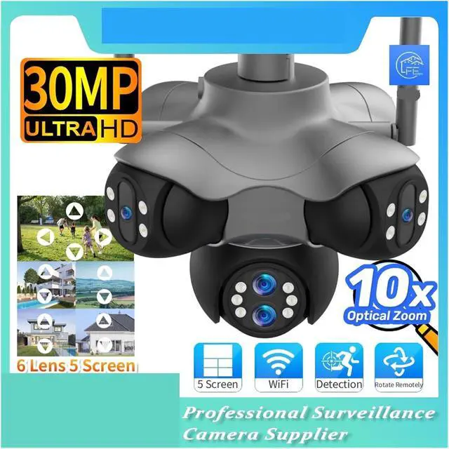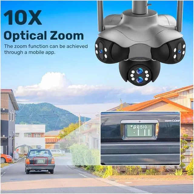 Six-lens five-screen + 30 million pixels + 10x zoom, capturing ultra-clear details across the entire area: Six groups of 5 million pixel lenses combined to form a 30 million high-resolution image, paired with 10x zoom, 360° panoramic coverage without blind spots, capturing the subtle dynamics of both near and far scenes clearly, providing more comprehensive indoor and outdoor surveillance.