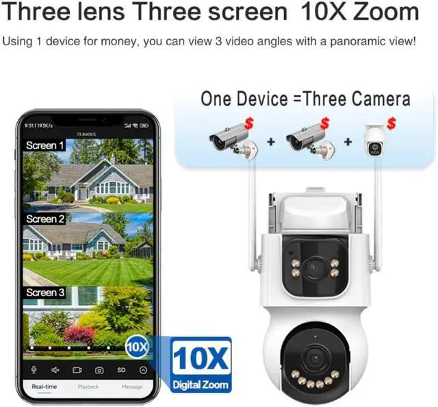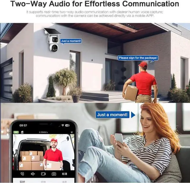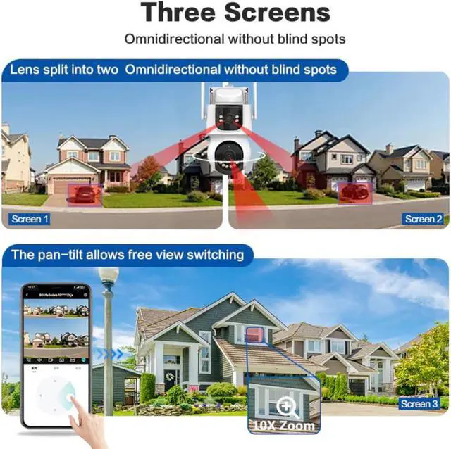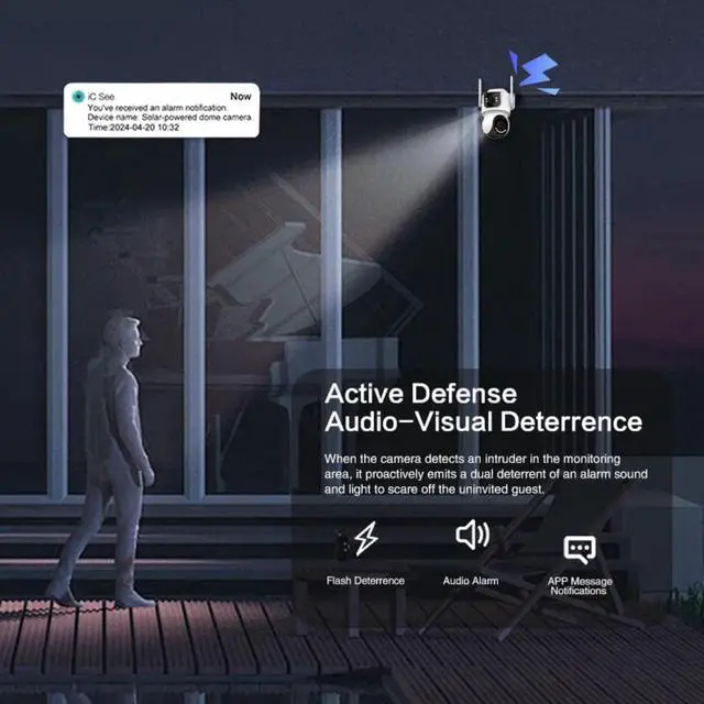 Voltky Wi-Fi Solar Security Camera with AI Human Detection Solar Powered Outdoor Camera, 24/7 Recording, 10X Zoom, Full-Color Night Vision, Two-Way Audio, PIR Motion Sensor, Cloud & Local Storage Protect your home or business day and night with the Voltky Wi-Fi SolarCam, a smart solar-powered outdoor security camera built for reliable, all-weather surveillance. Designed for continuous protection, this camera delivers 24/7 recording with a three-screen split view, making it easy to monitor multiple areas from one convenient app. Featuring advanced AI human shape detection and PIR motion sensing, the Voltky SolarCam accurately identifies real human movement while reducing false alerts from animals, shadows, or weather. The powerful 10X digital zoom allows you to capture fine details clearly, while two-way audio lets you listen and speak through the camera in real time from anywhere. Enjoy superior visibility in any lighting condition with full-color night vision, infrared night vision, and an integrated dual-light alert system. Multiple alarm modes and active audio-visual deterrence help scare off intruders instantly while sending real-time notifications to your smartphone. The Voltky Wi-Fi SolarCam supports local storage via micro TF card (up to 512GB, not included) for fee-free recording, or optional cloud storage through the app for added backup and convenience. Its solar charging system ensures long-lasting performance with minimal maintenance, making it ideal for outdoor home security, offices, garages, yards, and remote locations. Upgrade your security with the Voltky SolarCamcombining solar power efficiency, AI motion detection, smart alerts, and remote access for reliable protection anytime, anywhere.