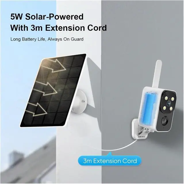5W solar power + 9000mAh large battery, with ultra-long battery life of up to 4-6 months: With a 3-meter extension cable, the solar panels can be flexibly arranged. Even when recording 20 segments of 10-second videos daily, it can still operate continuously for a long time. No wiring required, no frequent charging needed. It can operate stably in outdoor areas without power supply.