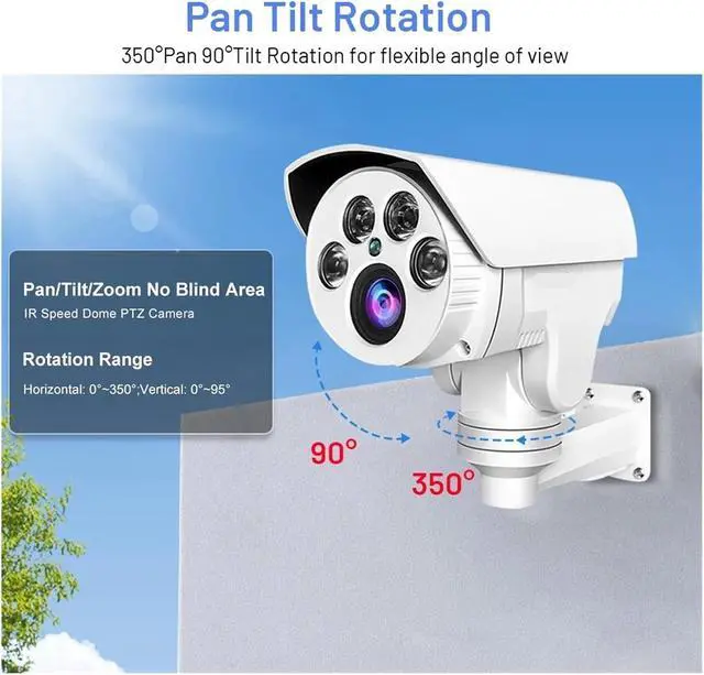 300° horizontal + 90° vertical pan-tilt, panoramic coverage without blind spots: Remote control of the lens allows for flexible rotation, a single device can cover open areas such as courtyards and factory sites, eliminating the complexity of multiple device stitching.