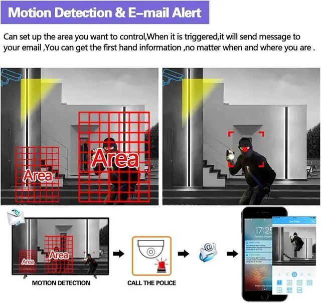 Intelligent detection + multi-end remote viewing, faster security response: Automatically sends email alerts upon motion detection triggering; Supports remote access to the monitoring screen anytime, anywhere, paired with an internal microphone for recording, synchronizing audio and video to preserve evidence.