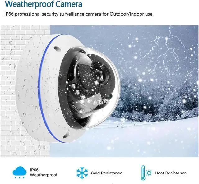 Metal body + IP66 waterproof, full durability for indoor and outdoor use: The metal material is sturdy and durable. The IP66 dustproof and waterproof rating is suitable for -10°C to 60°C environments, ensuring no damage from sun exposure or rain, applicable for both home and commercial security.