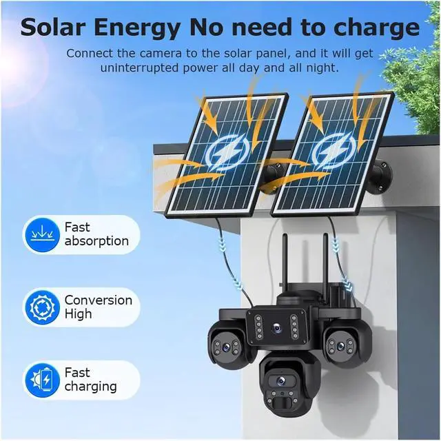 4G + WiFi dual network switching, remote viewing without stress: Compatible with both 4G LTE and WiFi network modes, even in remote areas without broadband, it can transmit pictures in real time, and the mobile phone can access the surveillance video at any time.