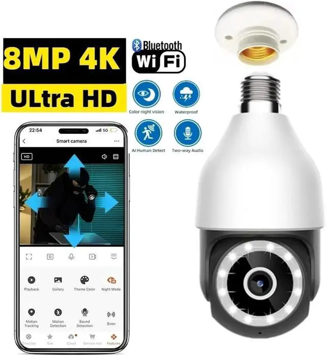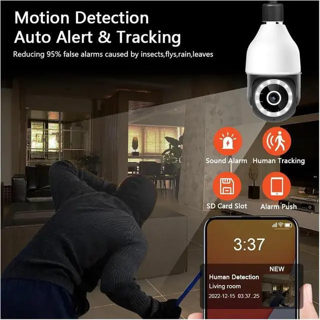 Plug-and-play bulb type, with zero installation barriers: Compatible with E27 lamp sockets. No complex wiring required. Just screw on the lamp socket to complete the installation. The pendant design combines lighting and monitoring functions, with one device achieving dual purposes.