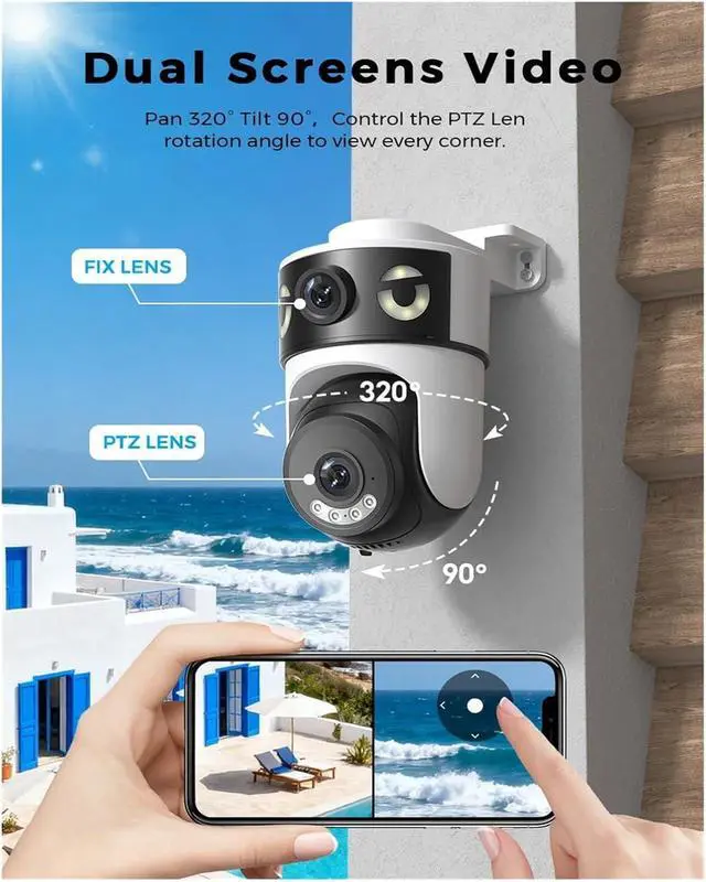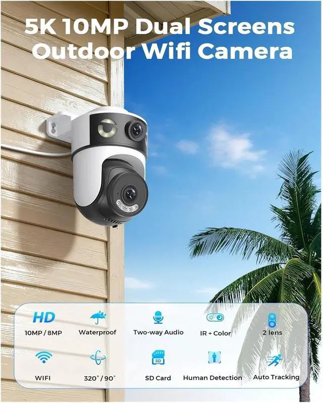 Dual-lens dual-screen + 10MP ultra-high definition, dual online image quality and field of view: Dual 3.6mm lenses combination, supporting 10MP (5MP + 5MP) / 8MP (4MP + 4MP) dual specifications, dual screen synchronous monitoring, combined with 5x digital zoom, details can be clearly captured both near and far.