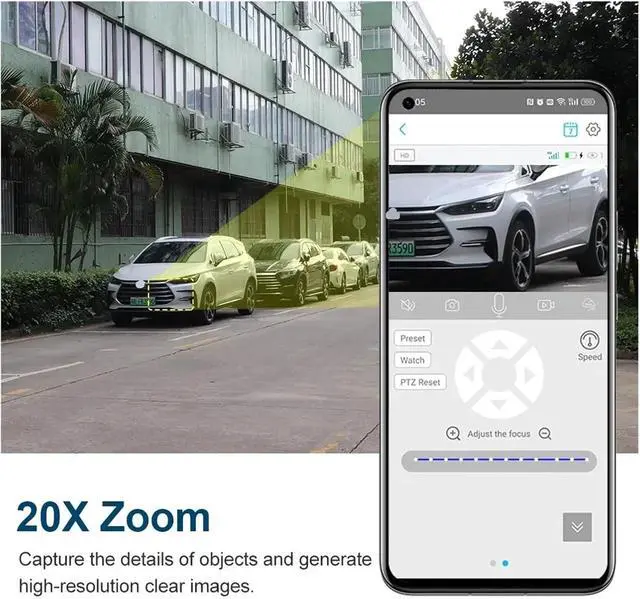 4K dual-lens 20x optical zoom all-round monitoring: Equipped with a 2mm wide-angle lens and a 5 - 50mm zoom lens, featuring a 355° horizontal rotation + 100° vertical elevation design. It can clearly capture scenes of any distance and achieve 360° all-round coverage.