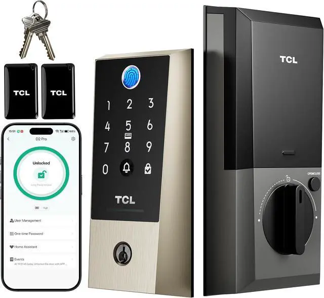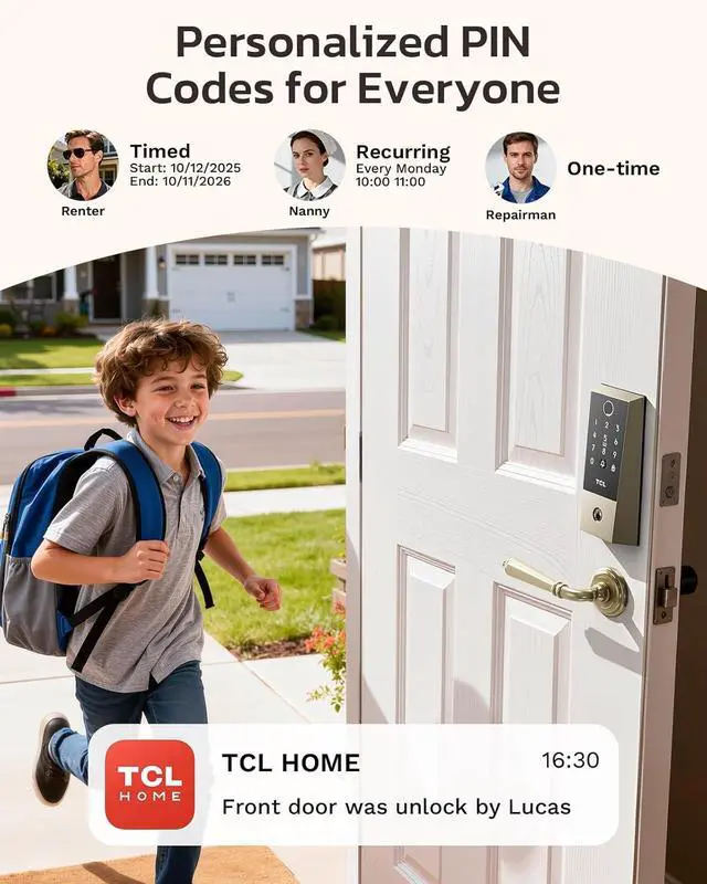 Hub-Free Wi-Fi with TCL Home App: Connect directly to your home Wi-Fi without the need for a separate hub. Use the TCL Home app for remote access and control, and receive instant notifications for all access events and doorbell rings, no matter where you are.