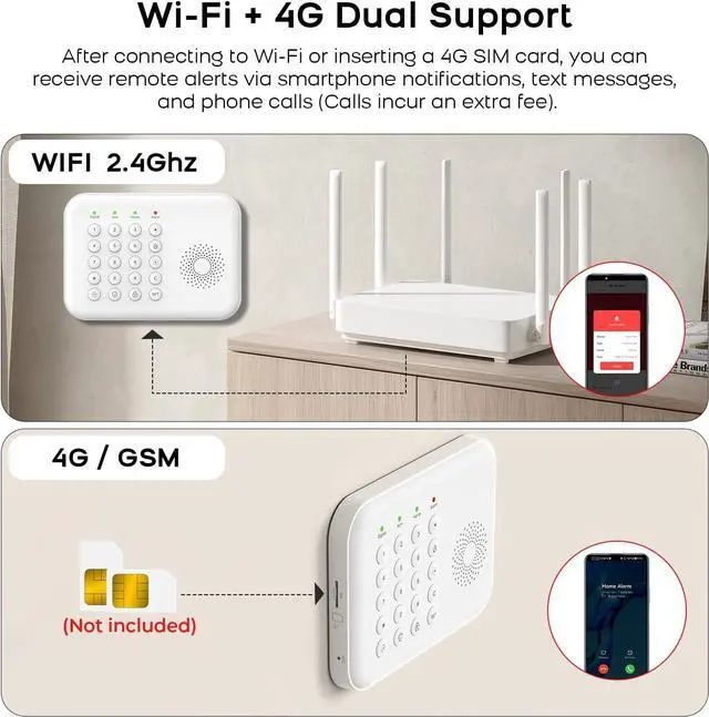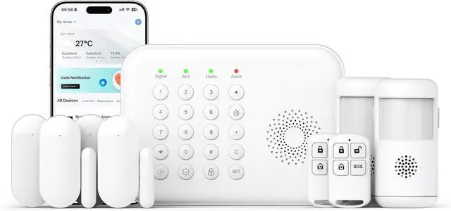 Compact and elegant minimalist design ---This security systems for house has a pure white exterior, smooth lines design, more intuitive keypad and small, exquisite motion sensors, which can be integrated into your furniture or used as a decoration in your home.