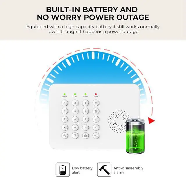 More Convenient Operation Method:Compared with the screen version, this Alarm System can be operated via keyboard with separate buttons for common functions such as home arming, away arming, emergency help, disarming, etc. It also has four separate signal indicator lights, making it suitable for people who prefer simple and direct operation.