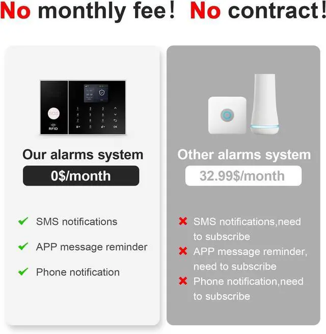 WiFi+4G Connectivity, No Monthly Fees:Home Security System can connect to 2.4GHz WiFi (5G not supported) and can insert a 4G SIM card for phone call and SMS alarm functions. Permanently free to use after activation with no additional charges.