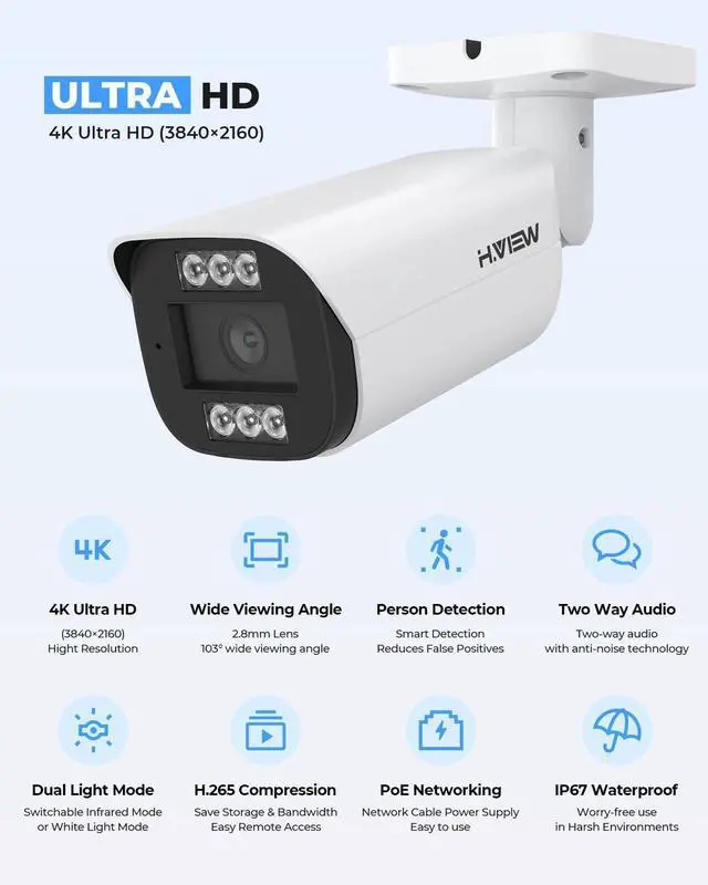 8CH 4K NVR Commercial Security Camera System All-in-One Security System Smart Dual Illumination Smart IR technology Brilliant Color Night Vision