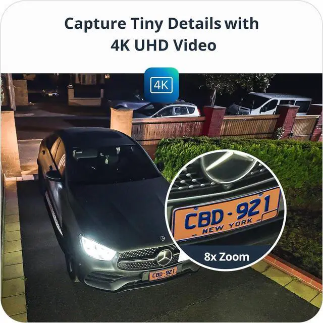 4K Ultra HD & Full-Color Night Vision: Experience crystal-clear video quality with 4K (3840×2160) and 8× zoom, capturing faces and license plates with precision, day or night. The f/1.6 lens and 140° wide-angle view help reduce blind spots, while advanced full-color night vision (up to 40ft) reveals potential threats in vivid detailnot just grainy shadows. The motion-activated spotlight enhances visibility, deters intruders, which further secures your home