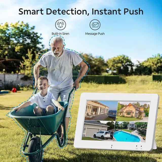 Easy Setup, Plug & Play: True All-in-One system with touchscreen monitor, supports up to 4 cameras. Simply connect the wireless outdoor security cameras and monitor to a power supply to provides instant notifications and stable live streaming. Enjoy 24/7 continuous surveillance. System works locally without the need of Internet.