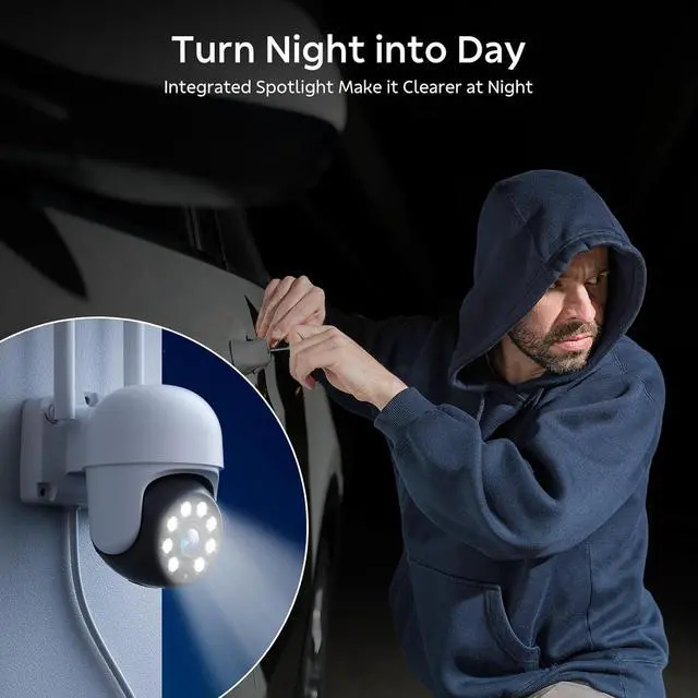 Reliable Night Guardian: Capture everything happening around your home with upgraded true 2K resolution. More than just daytime, equipped with 4 spotlights, it can capture more details even in complete darkness for excellent color night vision.
