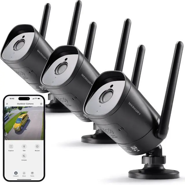 Weatherproof Outdoor Security: Elevate your outdoor security with Merkury Smart 1080p HD Outdoor Cameras. Experience live 1080p HD video, durable weatherproof construction, and intelligent features designed for maximum protection in any weather condition.