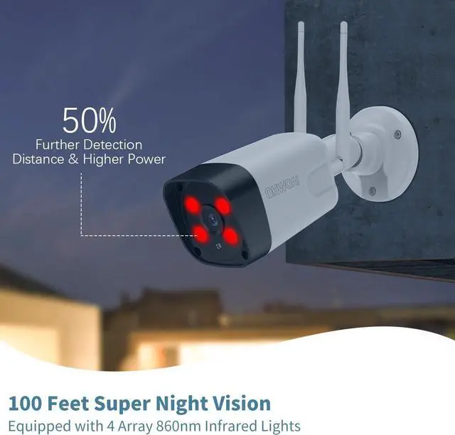 Dual Antennas Extend RangeOur wireless home camera with remote access utilize the industry's exclusive dual WiFi antenna chip, effectively extending the wireless signal transmission range by 50% compared to single-antenna security camera system. They establish a reliable connection to ensure stability, minimizing communication interruptions.