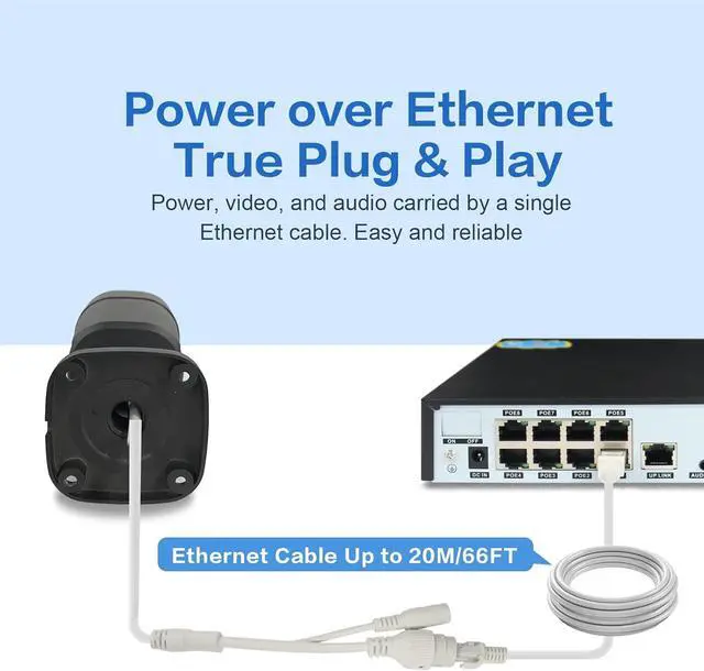 Power on PoE NVR: Power Adapter to provide supply to NVR (TV monitor needs HDMI/VGA Cable to connect NVR).Connect to Network via Router:Remote access requires an Ethernet cable to connect the NVR and switch the local router..Plug and Play: Single Ethernet cable can provide power supply to camera when connecting to NVR ports without using extra power supply.
