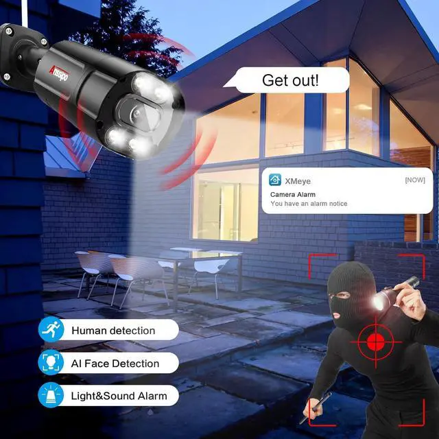 PoE Wired Camera Resolution: 5MPPoE NVR Resolution: 5MPCamera Lens: 3.6mm LensPoE NVR channle: 8 ChannelConnectivity Technology: Power Of EthernetCamera Function: Two way audio, Cameras builts in micphone and speakerDetection: AI Face Detection, Motion DetectionNight Vision: Color night vision & InfraredNotification: Spotlight Alert & Human motion alarm via App notificationHow to Record: Hard drive (Max. 6TB, pre-install 4TB Hard Drive in NVR)How to Power Camera System: Power on NVR, All cameras power supply by Ethernet