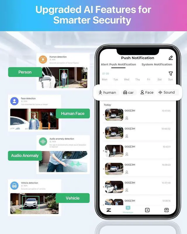 Person Vehicle Detection & Smart AlertsZOSI smart camera has AI detection, it can more accurately detec person and vehicle, and you can custom the alerts specific areas to reduce unnecessary notifications. This Surveillance Camera equips with a siren and spotlight as a deterrent, reacting to any potential danger