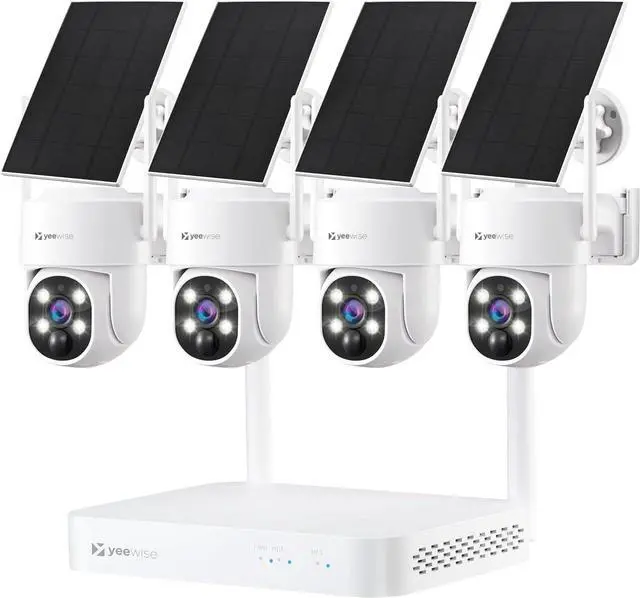 The video showcases the product in use.The video guides you through product setup.The video compares multiple products.The video shows the product being unpacked. The Yeewise 2K Solar Security System with battery-operated cameras and solar panels provides a comprehensive and easy-to-use home security solution. With built-in PIR Detection, Smart Deterrence, Color Night Vision, Pan Tilt Rotation and more, you can monitor and protect your home with confidence.