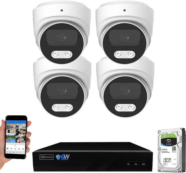 12.0 Megapixel Full HD Realtime Recording 8 Channel 12MP NVR (Support up to 12MP/8MP/5MP/2MP cameras, you can use the system with your existing cameras and add 12MP high resolution cameras later) and (4) 8MP 4K Weatherproof Outdoor/Indoor Color Night Vision POE IP Dome Cameras (Built-in microphone and 2.8mm 130° wide angle lens)
