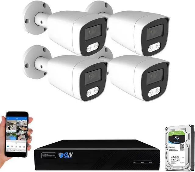 12.0 Megapixel Full HD Realtime Recording 8 Channel 12MP NVR (Support up to 12MP/8MP/5MP/2MP cameras, you can use the system with your existing cameras and add 12MP high resolution cameras later) and (4) 8MP 4K Weatherproof Outdoor/Indoor Color Night Vision POE IP Bullet Cameras (Built-in microphone and 2.8mm 130° wide angle lens)