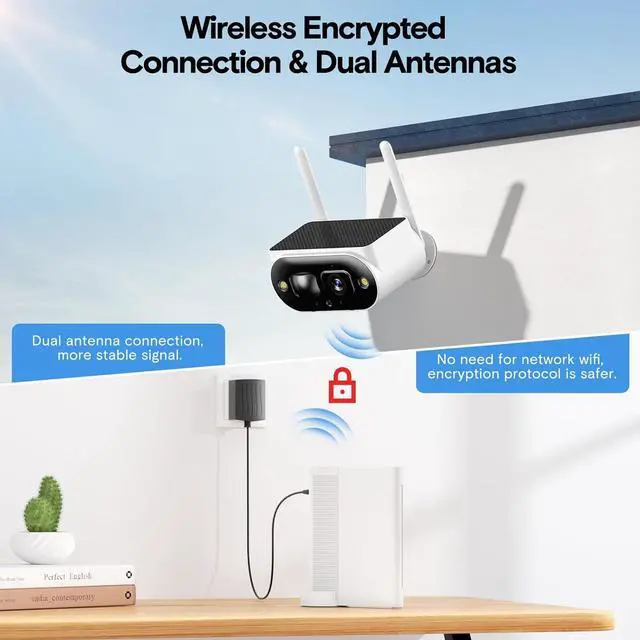 Solar panel and camera integrated design, 100% wireless, easy to install