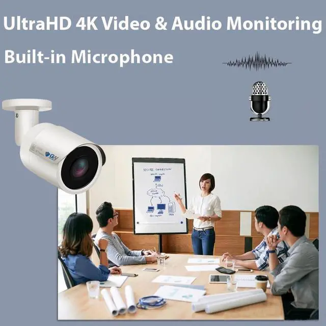 Each camera built-in microphone for audio recording, this can provide you with more information (such as voices) should an intrusion ever occur. It will also expand your security coverage beyond the camera's field of view and can help assist with interpreting events (even if they occur off-screen)