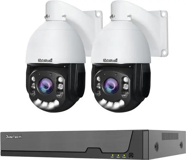 Gadpiparty JideTech 4K POE Security Camera System, 2pcs 8MP PTZ POE Speed Dome Camera and 4K 8CH Network Video Recorder, Human Vehicle Detection, Color Night Vision, Remote Access, 24/7 Record