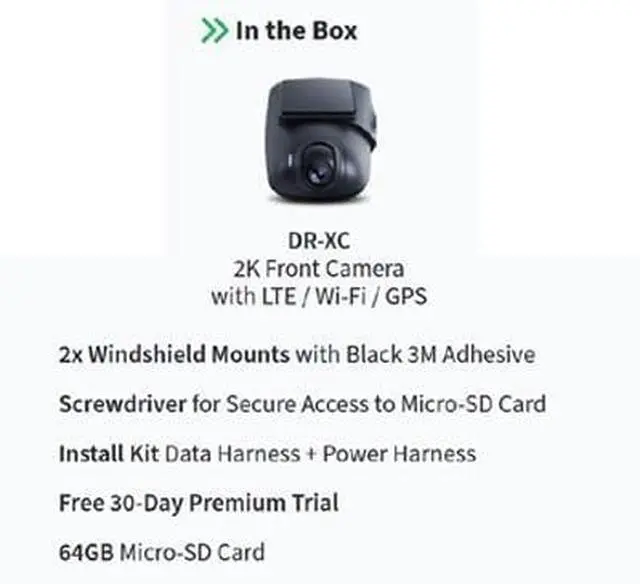 Drone XC is the only dash cam that can connect to an aftermarket alarm or remote start. Supports live video streaming over LTE and on-demand video playback. Additional video input for rear or interior camera.