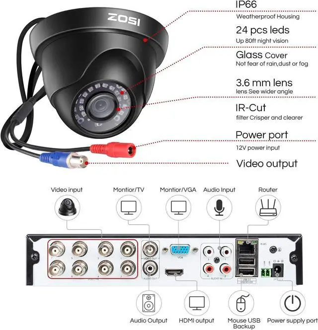 ZOSI H.265+ Security System Security DVR Specification Noted: What's in the box ? Weather resisitant Camera Local View & Remote View Different Recording Mode