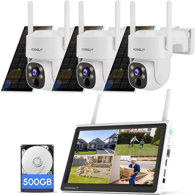 Solar Powered IP Cam& 100% Wire-freeThe VORGUT outdoor solar security camera features a high-capacity built-in battery that ensures continuous power for wireless outdoor security cameras, along with a highly efficient solar panel for optimal energy conversion. Gives you the flexibility to choose the installation location without any concerns about power supply.