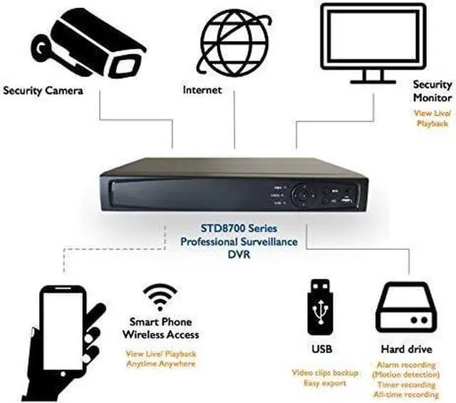 Remote Access & Web Viewing Monitor your property in real time via smartphone (iOS/Android) or access playback through IE, Firefox, Safari, and Chrome browsers.