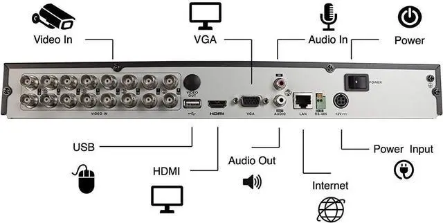 16-Channel Surveillance DVR Supports up to 8 HD-TVI/Analog high-definition cameras for versatile security system setup and clear video capture.