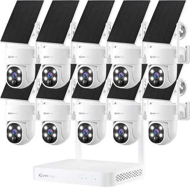 The video showcases the product in use.The video guides you through product setup.The video compares multiple products.The video shows the product being unpacked. The Yeewise 2K Solar Security System with battery-operated cameras and solar panels provides a comprehensive and easy-to-use home security solution. With built-in PIR Detection, Smart Deterrence, Color Night Vision, Pan Tilt Rotation and more, you can monitor and protect your home with confidence.