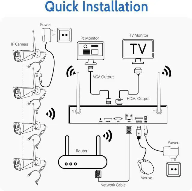 Zypola® Wireless Security Camera System, 4CH NVR with 500GB HDD, 4pcs 2MP WiFi Cameras, HD Video, Night Vision, Weatherproof, Motion Detection for Home & Business