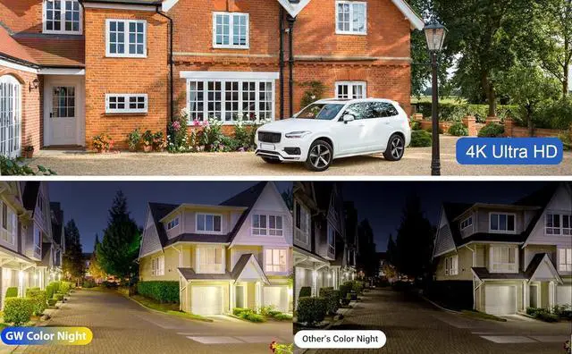 True Ultra HD 4K 8-Megapixel Resolution - GW 4K (8MP) cameras use advanced 8-Megapixel STARVIS image sensors and have approximately FOUR times the amount of pixels as a 1080p HD camera. Our 8.0 Megapixel 4K cameras are capable of true HD 2160p resolution (3840 x 2160), giving sharper and larger image and video than 4MP or 1080p security cameras. This higher resolution is the same as a high definition 4K television and movie that consumers are use to.Get the big picture - Each IP camera delivers 8.0 megapixel at 3840 x 2160 pixels with sharper and larger image and video than 4MP cameras.The latest Starvis Starlight Technology - It realizes full color video recording at night in very low light conditions which other infrared camera can't do.AI Human & Vehicle Detection - You'll instantly know if a person or a car arrives on your property with advanced AI motion detection technology. This AI technology reduces false alerts and only sends relevant person & cars snapshot images & push notifications to your email or Phone.H.265 Technology - H.265 is the latest video compression which brings extensive possibilities and optimism to IP Camera, it also helps keep files sizes low without losing the 4K video qualityPower Over Ethernet - A single network cable directly connects each IP camera to the PoE switch supplying both power and a video signal. This time no extra power cable needed just plug one cable for one camera and its on the go.Network Remote access - Supports Remote View via smartphone & PC with each of those systems below: Windows XP, 7, 8, 10, 11, Mac, iPad, iPhone, Android, Mac