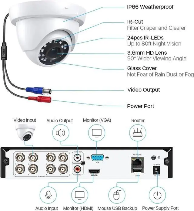 IR Night Vision : Up to 80ft(24pcs IR LED)