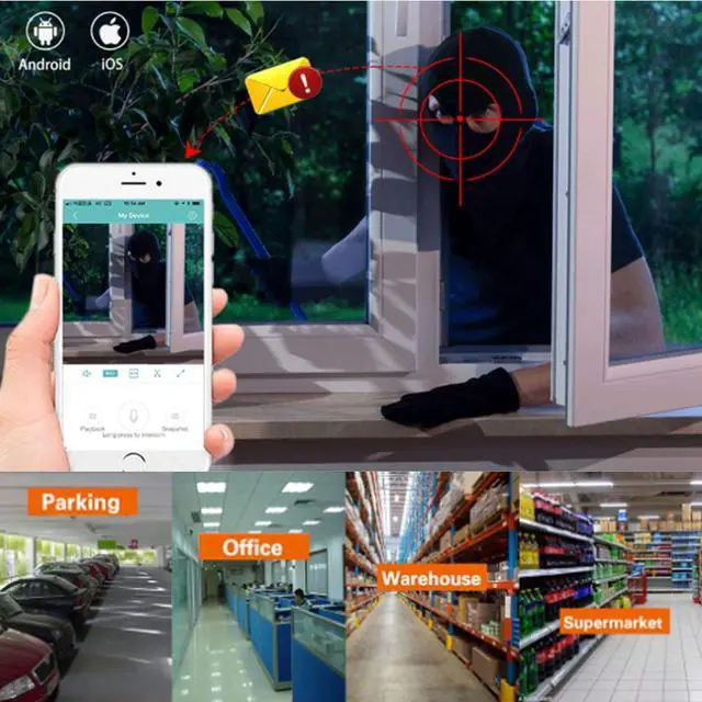 • Built in Audio/PIR Motion Detection: The recording can be recorded at the same time. It will let you fullyunderstand the situation of the video in real time, provide more security. Highly sensitive PIR motion sensor offer almost no false alarms. You will receive instant app push notifications when motion events are detected.