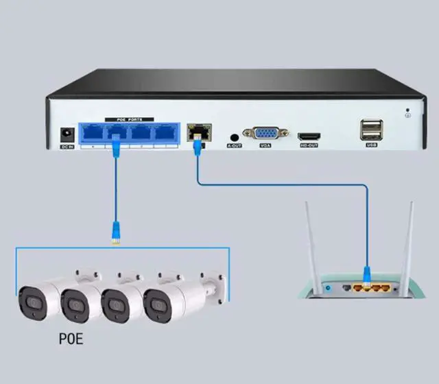 • 4MP POE: H265 High compression ratioIn, Supports access to 4 million ultra-clear and below pixel cameras, the clarity and fineness of the picture get greater restoration guarantee. Get a sharp and crisp image day or night with the camera's automatic IR filter. IP66 weatherproof housing, Uninterrupted recording and storage 24 hours a day to keep your home and business safe.
