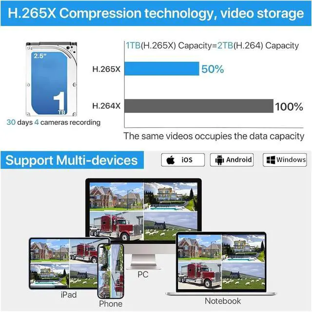 - 6. H.265 video format, allowing you to watch smoother videos;
