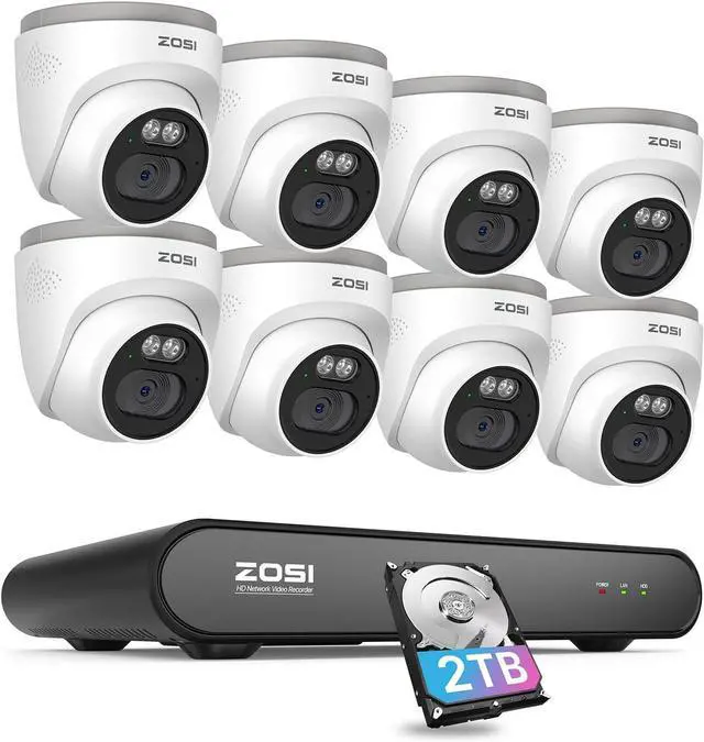 (1). [ Simplified Setup with PoE Technology ]__Experience hassle-free installation with the C220 4MP 2.5K PoE security camera and ZOSI 5MP 3K PoE NVR. Simply plug the camera into the NVR using a PoE connection, eliminating the need for separate power cables. This beginner-friendly setup is perfect for DIY enthusiasts.