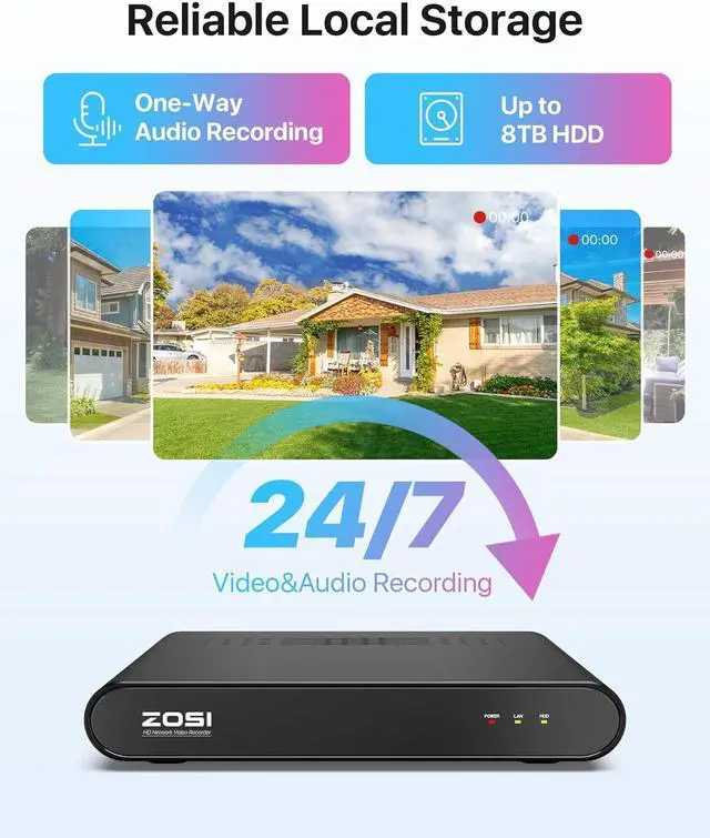 (4). [ Flexible Remote Access & One-Way Audio ]__Effortlessly access and control your cameras via the ZOSI Smart App on your smartphones or the AVSS Client on tablets/PC, all without additional fees. Add ZOSI cameras for Live View and capture critical evidence with the built-in microphone for high-fidelity audio.