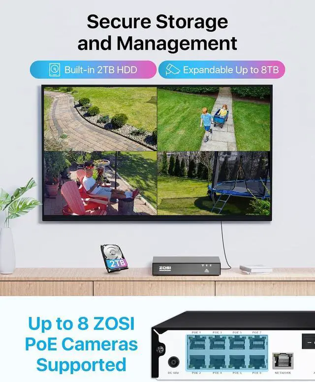 Gadpiparty ZOSI 4K PoE Security Camera System with AI Face Person Vehicle Detection, 4 x 5MP 3K Outdoor Auto Tracking PT PoE Camera with 5X Digital Zoom, 2-Way Audio, 8CH 8MP NVR with 2TB HDD (16CH E