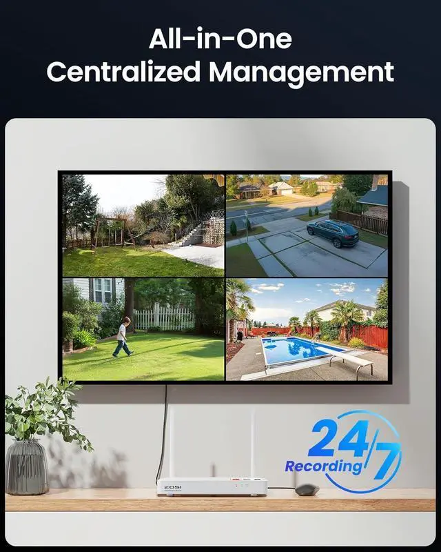 [1TB HDD for Uninterrupted 24/7 Recording] The 4K 8CH WiFi NVR arrives with a pre-installed 1TB HDD, enabling it to provide ultra-long and seamless continuous recording as well as local storage capabilities. The system is designed to support the automatic overwriting of older video footage. Additionally, you have the option to transfer video files via USB for backup purposes. For round-the-clock surveillance, both the WIFI camera and the NVR require a constant power supply to ensure uninterrupted operation.