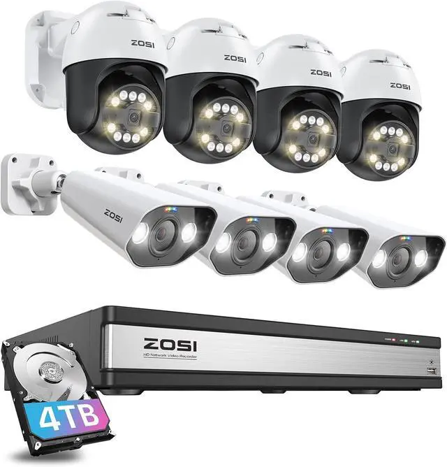 4K PoE Security Camera System PoE Security Camera System 355° Pan & 140° Tilt, Uninterrupted Field of View